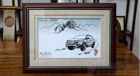 奇瑞汽車定制的以瑞虎5為題材的企業(yè)文化鐵畫禮品